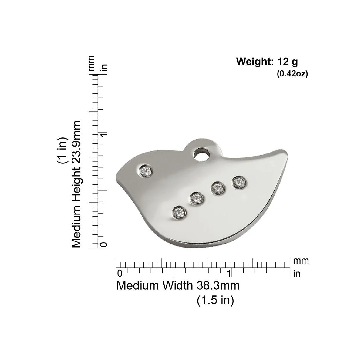 Our diamante polished stainless steel tags are set with Swarovski® Zirconia.